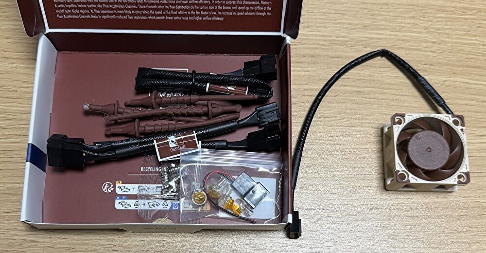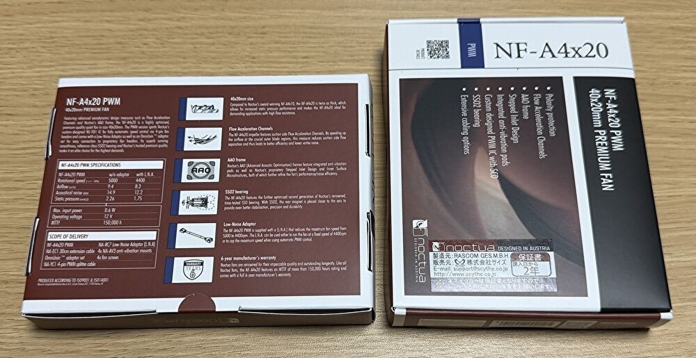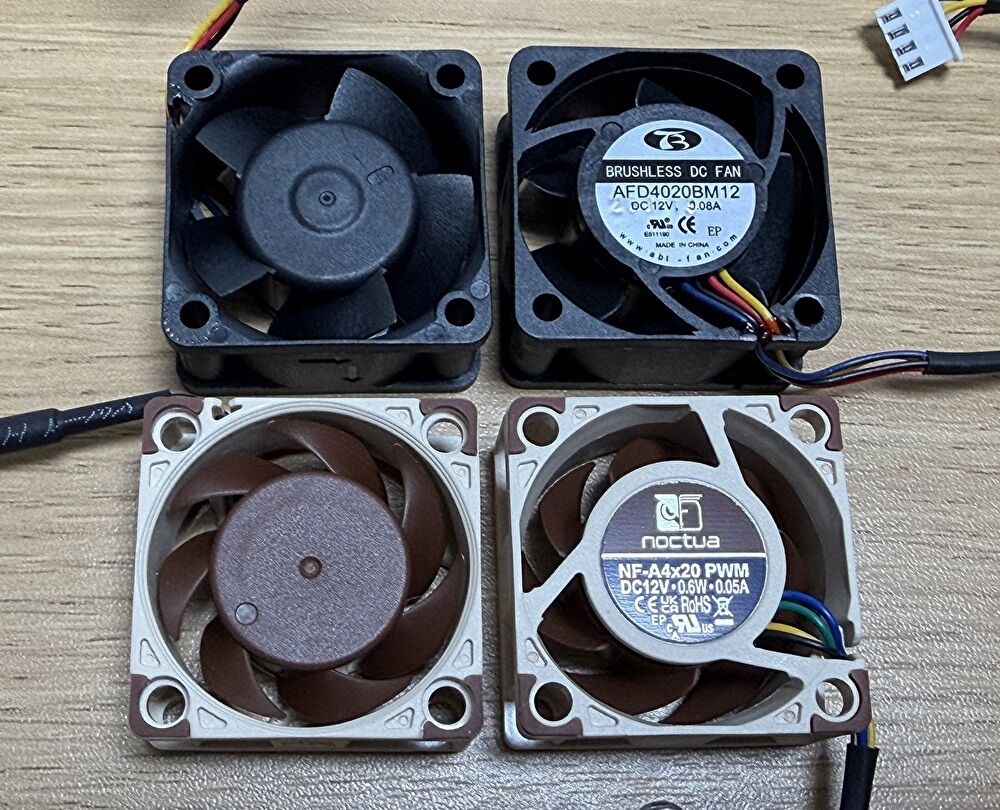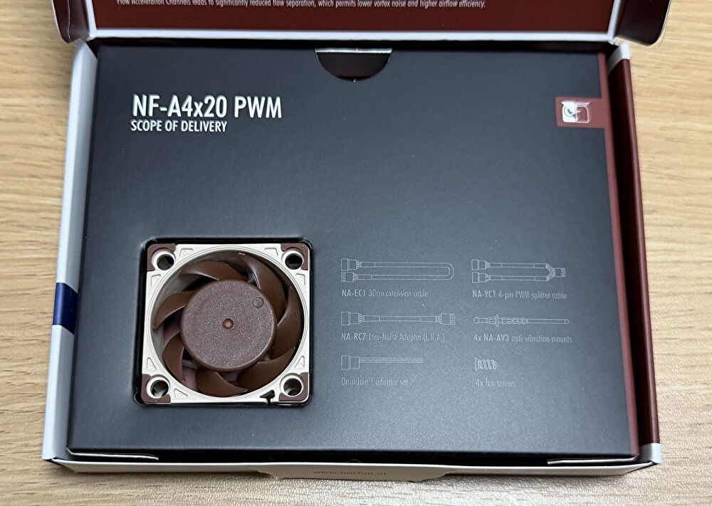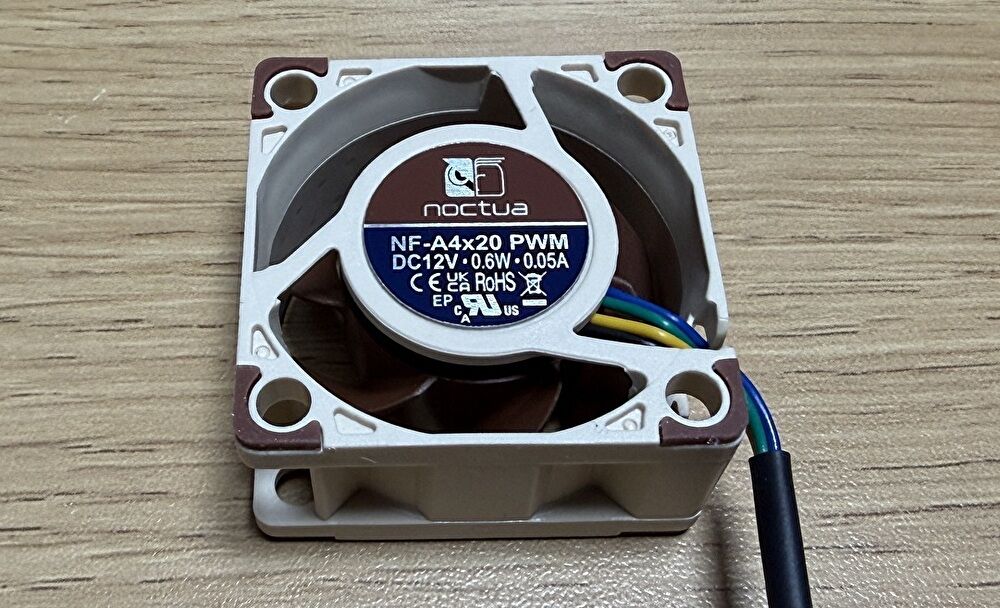 そこで、静音性で定評のある「Noctua」ブランドのファン「NF-A4x20」を購入し、ファンを換装しました。結果、ファン音量は大きく改善しました。