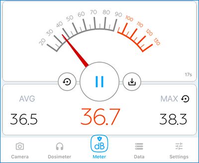 ▼ファン交換後のファン回転が小さい状況(上)、通常使用時(下)のファン音量です。多くの場合は下の平均約36dBとなり、PC作業時、就寝時、テレビ視聴時などには それほど気にならないほどに静音です。