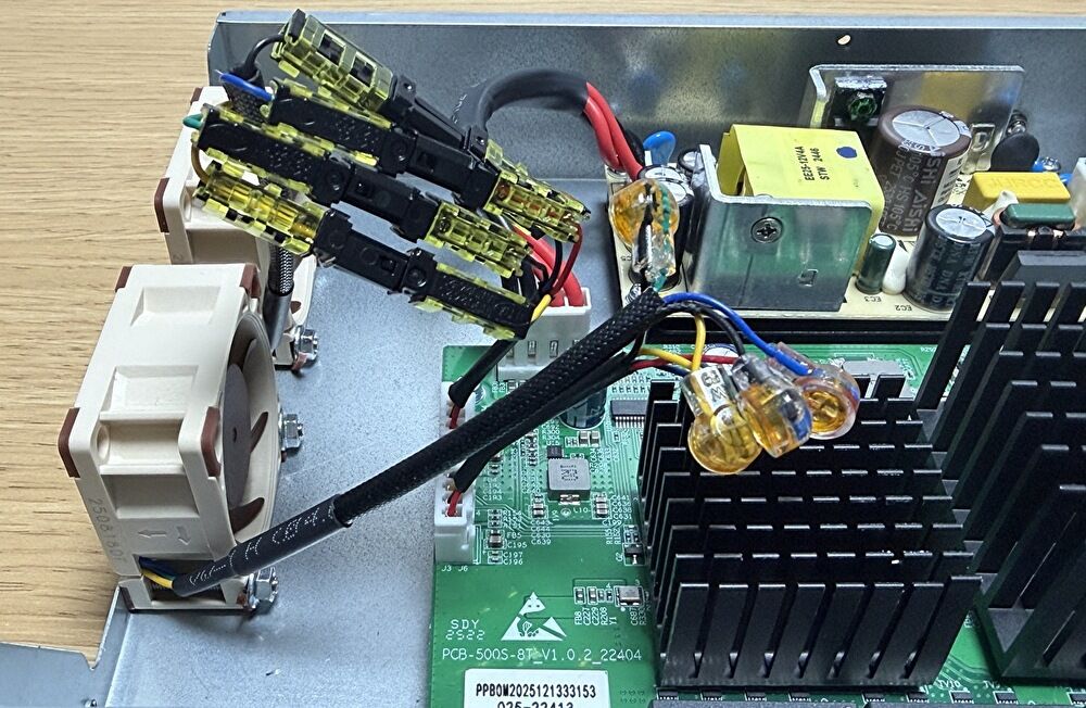 今回は、購入したスイッチングハブと「Noctua、NF-A4x20」の交換プロセスについて記載します。なお、「Noctua、NF-A4x20」のコネクターは4ピンですが、ハブのコネクターと形状がマッチせず、ケーブルを切断し、コネクターで接続しています。