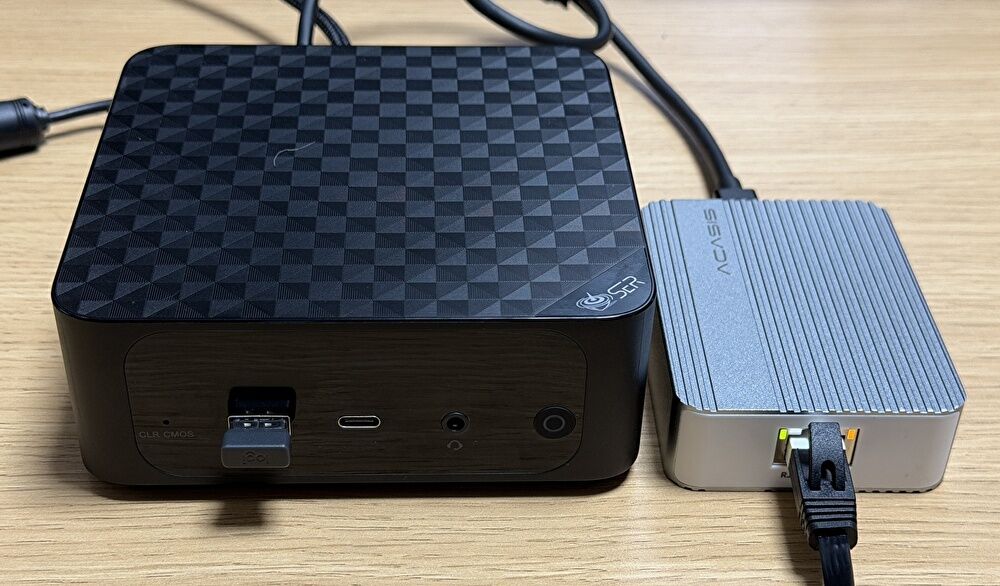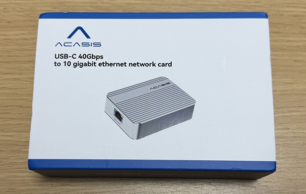 今回レビューする製品は、「Acasis」の10Gbps USB-C to RJ45 アダプターです。他の10Gbps USB-C to RJ45 アダプターと同様に、接続可能なPCはThunderbolt 3/4/5,USB4を搭載する製品となりますが、私はUbuntuで構築したNASで常用しており、M4 Mac miniやWindows 11 PCにおいても安定動作しています。