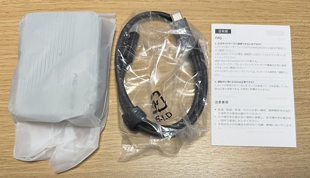 ▼付属品は40Gbpsのケーブルと簡易的な説明書。