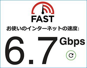 自宅の10G ネット環境は以下です。当環境のもと、「Acasis」の10Gbps USB-C to RJ45 アダプターを利用した、Fastでの回線速度の事例です。