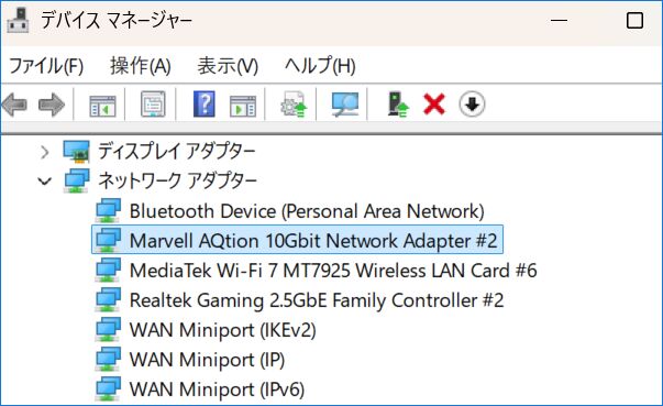 ▲▼Windows 11 PCに接続時の「デバイスマネージャー」の情報ですが、Marvellのチップです。Mac、Windows 11、Ubuntuともに、ドライバーをインストールすることなく動作しています。