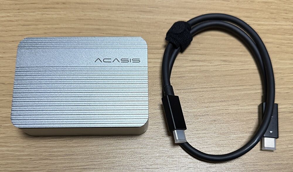 ▼購入したのは以下のAcasisの製品です。国内通販ではなく、アリエクでの購入です。国内通販で販売の製品と比較するとヒートシンクが大きく(10G USB アダプターは、他の製品も同様に かなりの熱を帯びます)、AcasisはMac他の周辺機器を複数展開していることによる安心感もあります。為替レートによって変動しますが、2026年3月16日現在のアリエクでの価格は 約11千円。40Gbps対応のケーブルが付属し、注文から到着まで7日間と意外と納期は早かったです。