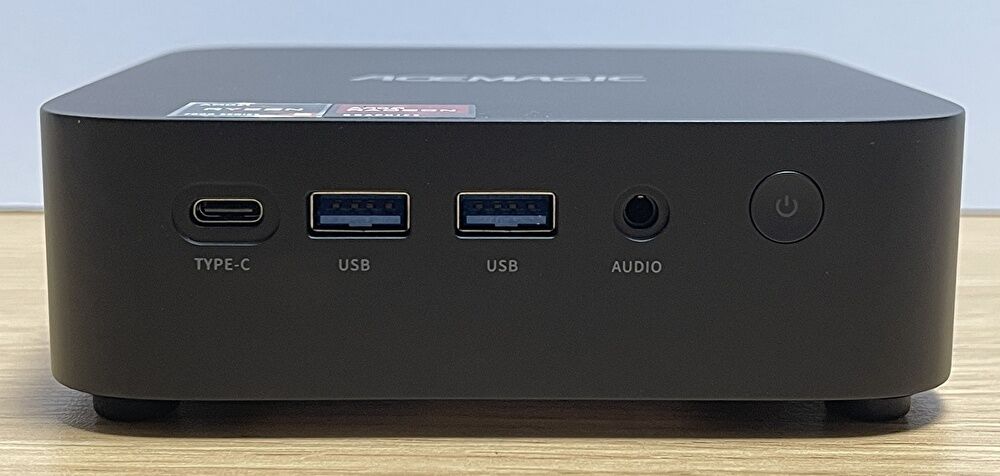 スペックは下表となりますが、上の画像のとおり、映像出力にも対応のフル機能のUSB-Cポートのほか、USB-Aを6ポート備えていることも特徴の一つです。一方、下表のピンク網掛けのとおり、標準装備のM.2 SSDはPCIeではなく SATA、RJ45 イーサネットは 2.5Gbpsではなく 1Gbpsです。ただし、SATAとRyzen 7430Uに対応のPCIe 3.0 SSDにおいて、大きく体感できるほどの差はありません。