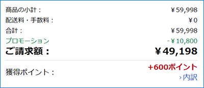 2026年1月17日現在、Amazon 販売ページのタイムセール価格は 20%オフの59,998円と表記されていますが、注文時にさらに18%オフとなり 49,198円での販売です。同じく Ryzen 3 4300U、メモリ 16GB、SSD 512GBの同社のミニPCが 42,580円(Amazon 販売ページはこちら)であること考慮すると 割安です。
