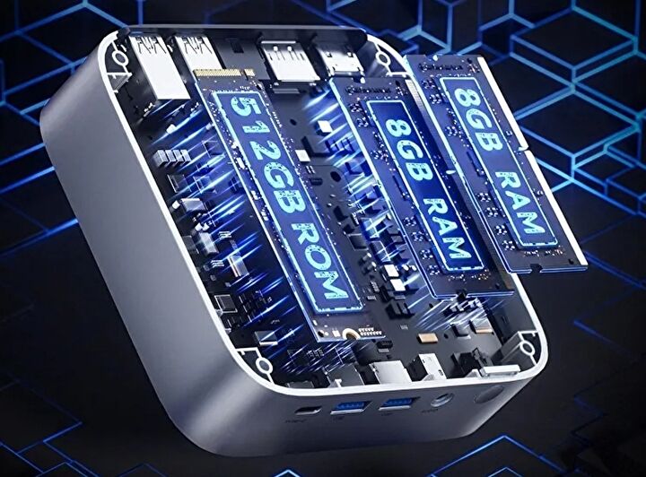▼イメージ画像やイメージ動画のメモリはスロット形状ですが、オンボードメモリの可能性もあります。また、以下の画像の M.2 SSDスロットは一つですが、PCIe 3.0 / 4.0に対応するスロットを2つ装備しています。標準装備のSSDにPCIe 3.0 あるいは 4.0の明記がありませんが、ACEMAGICのミドルレンジクラスの製品の傾向から PCIe 3.0だろうと思われます。