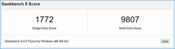 Geekbench 5のスコアは「シングルコア 1772、マルチコア 9807」。