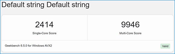 Geekbench 6のスコアは「シングルコア 2414、マルチコア 9946」。Geekbench 5と6では、評価項目とスコア判定のベースとなるPCのスペックが異なり、Geekbench 6は5よりも高いスコアとなります。