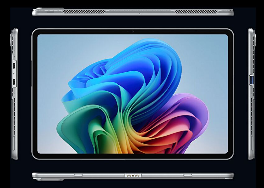 ▼充電・映像出力に対応する USB Type-Cは横持ちでの左サイド、2スピーカーは上サイド、USB-Aは右サイドに配置されています。他のイメージ画像を参照しても、ラウンドしたサイドの処理が美しい筐体です。
