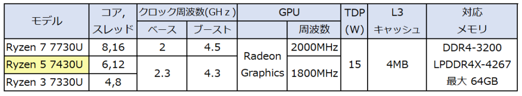 AMD Ryzen 5 7430Uの概要