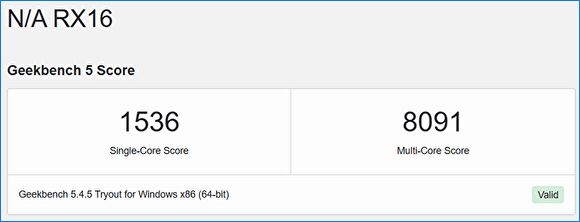 Geekbench 5のスコアは「シングルコア 1536、マルチコア 8091」。他のベンチマークソフトのスコアも同様ですが、Ryzen 7000シリーズ 末尾「HS」の期待感ほどに高いスコアではありません。ただし、当然ながらも、Alder Lake N100やTwin Lake N150、Ryzen 3 3300UなどのエントリークラスのCPUと比較すると、高いスコアです。事例として、N100やN150のシングルコアのスコアは 900台後半となります。
