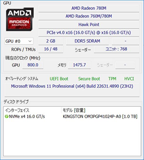 | GPU | AMD Radeon 780Mグラフィックス |