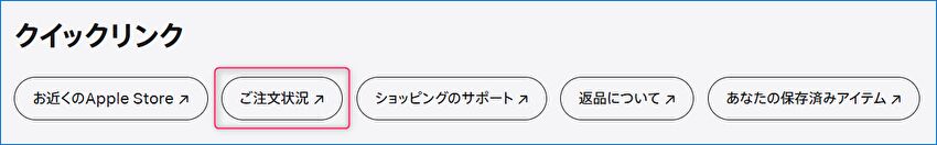 ▲▼上のApple Storeのホーム画面にアクセスすると、Web サイトの下に以下の「クイックリンク」がありますので、このうち「注文状況」を押下します。