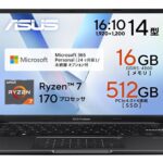 上記の下位モデル、今回紹介のCore Ultra 7 258V、メモリ 32GB、SSD 1TBともに、ASUS オンラインストア・楽天市場・Amazon ともに同価格の184,800円(楽天市場はクーポン適用後)での販売です。
