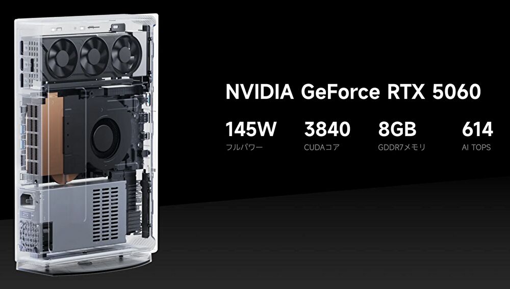 | GPU | NVIDIA GeForce RTX 5060、8GB、TDP 145W |