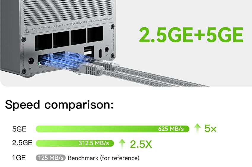 ▼R45 イーサネットは10Gではありませんが、5G RJ45を搭載し 最大転送速度は 625MB/s。なお、こちらの画像を参照しても、金属製の筐体は高品質です。