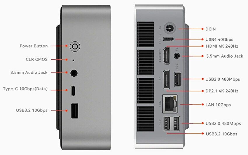 ▼先行販売の「MINISFORUM」の製品と比較し、最大の特徴となるのが 10Gbps対応の有線LANポートを搭載していること。私は最近 NURO 光を2Gから10Gに変更したのですが、10Gbps対応のRJ45ポートは大きな魅力です。
