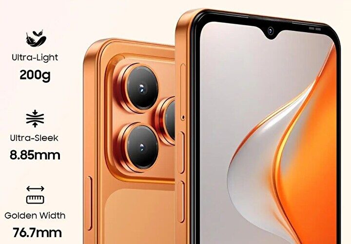 2026年4月12日現在、Amazonでは上の画像のオレンジの販売はなく、ブラックとブルーの販売です。リアカメラ周りとサイドのデザインは iPhoneを意識しています。エントリークラスのスペックと14,900円の価格から、サブ機扱いとなるスマホです。