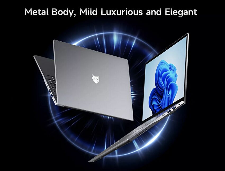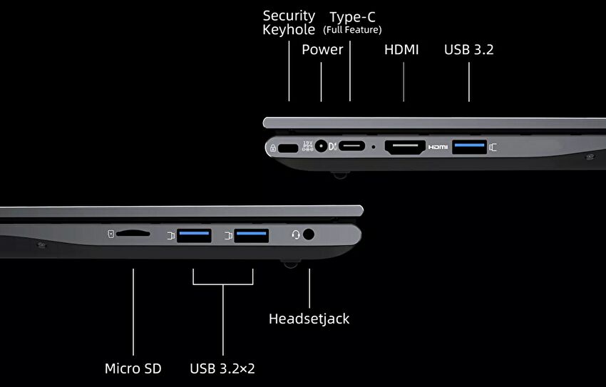 ▼筐体は金属製と明記されています。おそらく、他の多くの中国製PCと同様に、天板と底板はアルミ製、キーボード面は樹脂製と思われます。