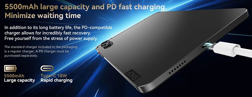 ▼同じく8.4インチの「BNCF Bpad mini」や「BNCF BPad Mini Ultra」のバッテリー容量 6050mAhに対して、本製品は5500mAhとやや控えめです。