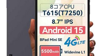 1万円台前半の8.7インチ Android タブレットが複数販売されていますが、「SVITOO P08」もその一つです。SoCには 8コアのUNISOC T606を搭載し、物理メモリ 4GB、LTEに未対応のWiFi モデルです。2025年...
