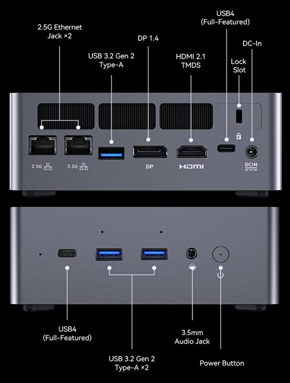 | ポート類 | USB4 x 2、USB-A 3.2 Gen 2 x 3、HDMI、DisplayPort、2.5G 有線LAN x 2 |