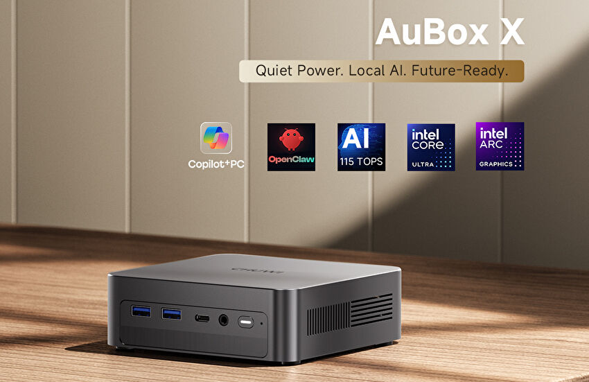 「CHUWI」より、CPUにCore Ultra シリーズ2のCore Ultra 7 256Vを搭載するミニPC「AuBox X」が発売となりました。AI性能は、GPU / NPU / CPUをあわせて 最大 115 TOPSの実力です。また、GPUはIntel Arc 140Vを搭載し、統合型GPUとしては高性能であり、M.2 PCIe 5.0 x 4 SSDに対応の空きスロットを備えていることも 大きな特徴です。