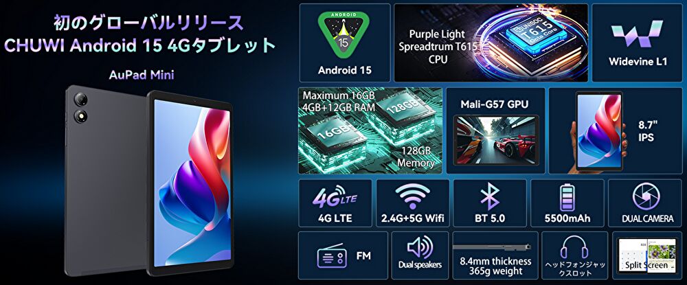 SoCとして UNISOC T615を搭載する 8.7インチのAndroid タブレット「CHUWI AuPad mini」が、2025年12月14日現在 Amazonにて クーポン価格 11,900円で販売中です。