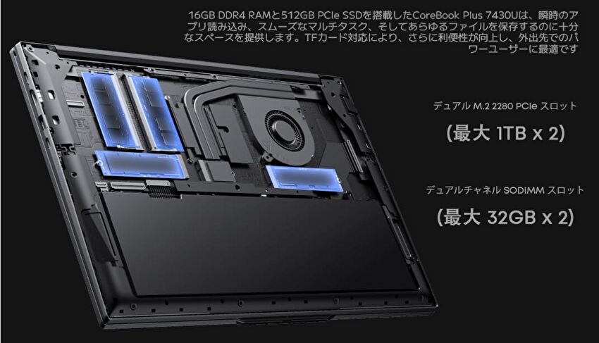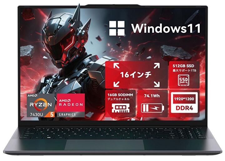 国内通販にて、CPUにAMD Ryzen 5 7430Uを搭載する16インチ ノートPC「CHUWI CoreBook Plus」が販売されています。Ryzen 5 7430Uは、各社ともにエントリークラスのノートPCに搭載されていますが、本製品においては、アスペクト比 16:10のアスペクト比、2スロットの16GB メモリ / 512GB SSD(空きスロットあり)にして、56,900円と低価格なことが特徴です。