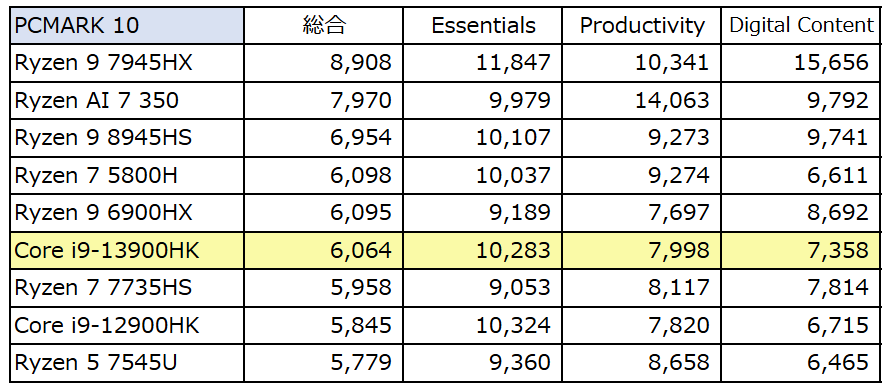 Core i9-13900HK、実機で計測のベンチマークスコア