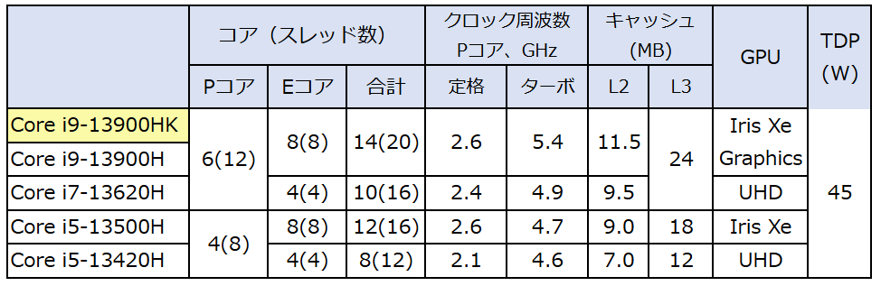 Core i9-13900HKの概要