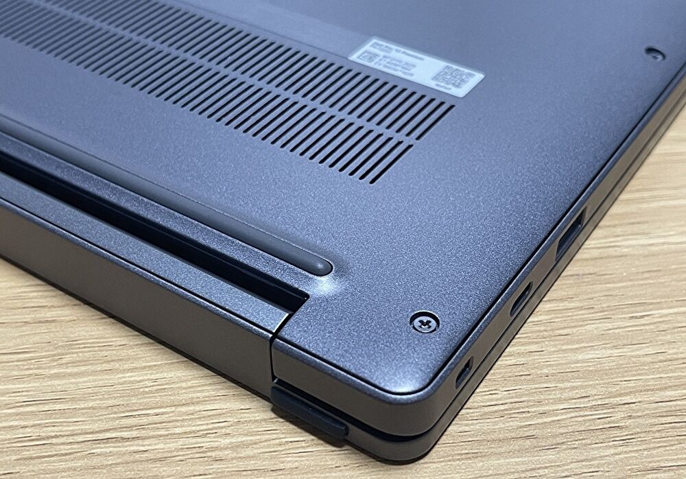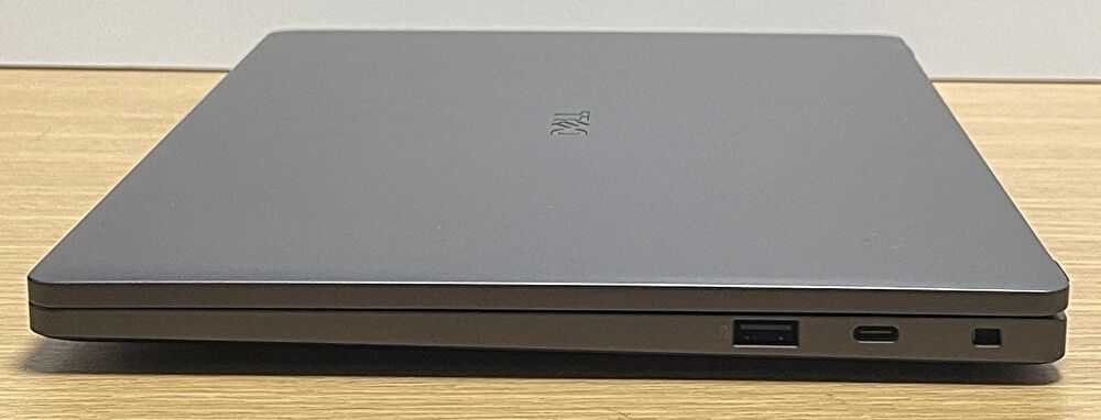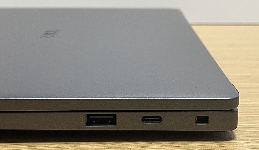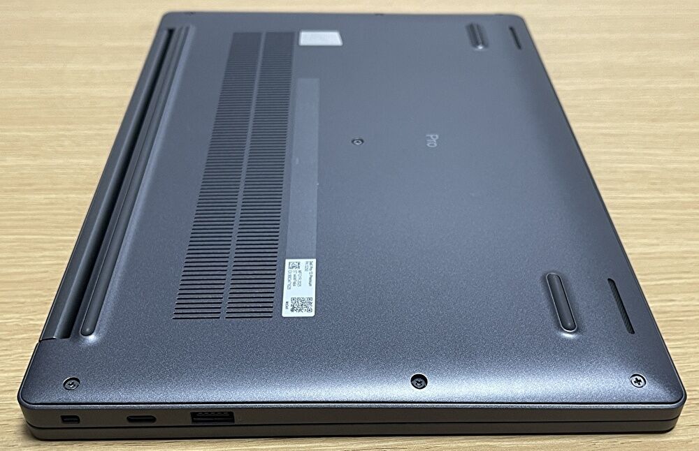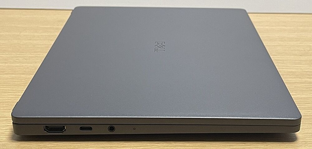 外観について記載します。マグネシウム製の筐体は、当然ながらも質感の高いもの。質量 1.07kgと13.3インチとしては軽量ですが、グレイの色合い、厚みもあり、ややズッシリ感があるように思います。