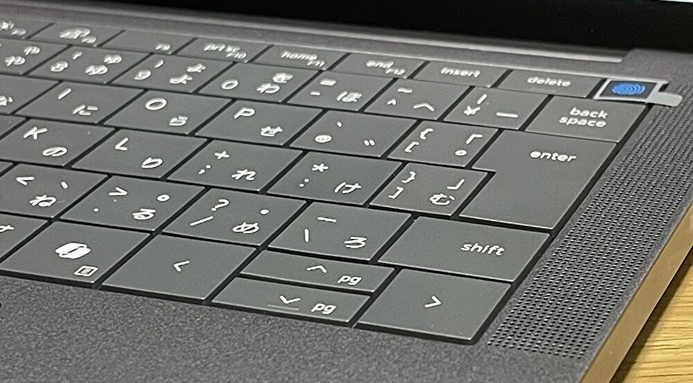 ▼「ゼロラティス(Zero-Lattice)」と名付けられたキーボードも特徴の一つです。キーとキーの間が狭く、キーピッチが広くなっています。アイソレーションタイプに慣れている私ですが、短時間のタイピングですぐに慣れ、違和感などはなくタイピングできています。ただし、M1 MacBook Airなどと比較すると、やや窮屈さを感じます。