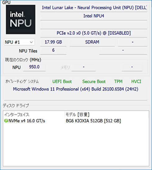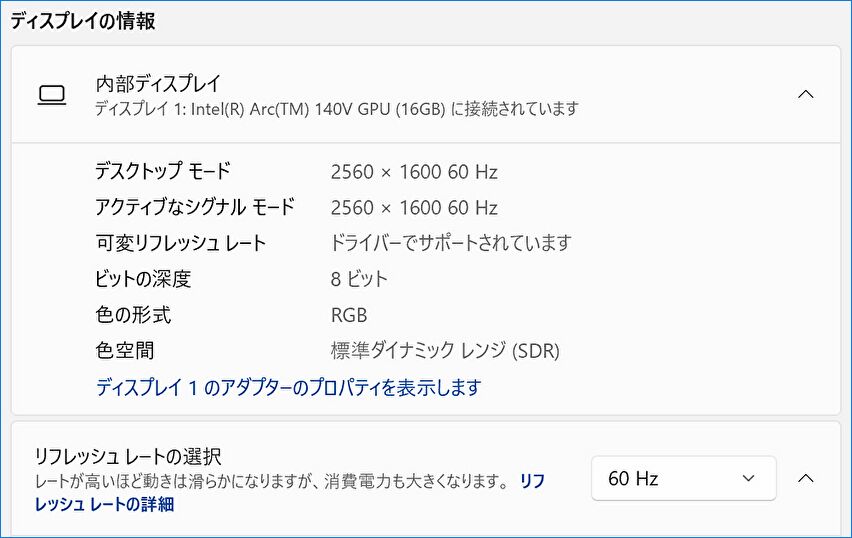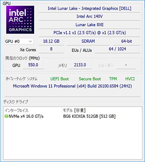 ▼統合型GPUは Intel Arc 140V。後のベンチマークスコアにおいても記載していますが、統合型GPUとしては、高い性能です。