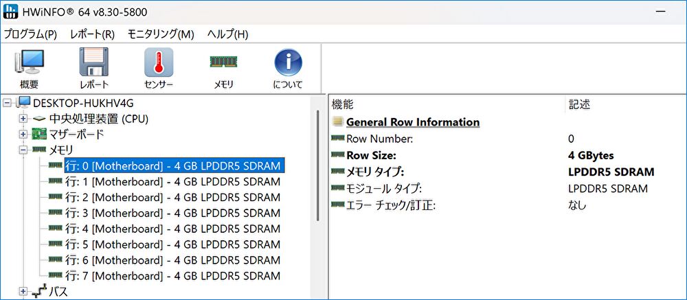 以降の画像は、フリーソフト「HWiNFO」から抽出したものです。