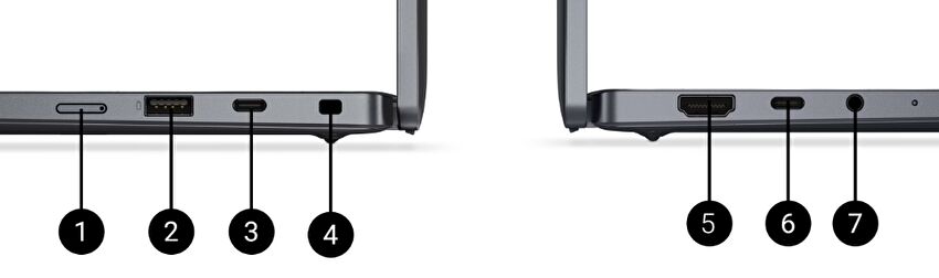 ▼右サイドの①は、オプションとなる SIMカードトレイですが、レビュー機には未搭載です。③と⑥はThunderbolt 4ポート、双方ともに 充電・映像出力に対応しています。