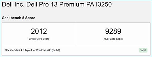 Geekbench 5のスコアは「シングルコア 2012、マルチコア 9289」。これまでに私が実機レビューしたPCにおいては シングルコアで2,000超えとなるCPUは多くなく、これまでに実機レビューしたPCでは上位のスコアです。