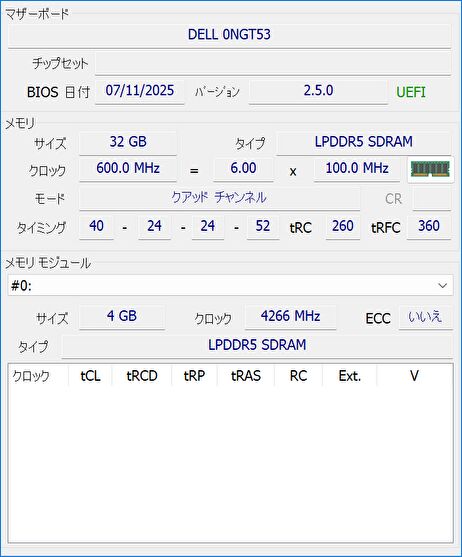 ▼オンボードのLPDDR5 32GBのメモリは クアッドチャンネルでの動作です。