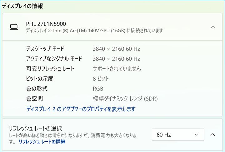 ▼私の通常利用と同じく、27インチ 4K モニターへの映像出力です。