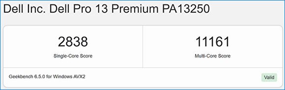 Geekbench 6のスコアは「シングルコア 2838、マルチコア 11161」。AMD Ryzen 9 8945HSとのマルチコアの差は、Geekbench 5よりも小さいです。ちなみに、Geekbench 5と6では、評価項目とスコア判定のベースとなるPCのスペックが異なり、Geekbench 6は5よりも高いスコアとなります。