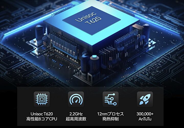▼私はUNISOC T620を搭載する端末の使用経験がないのですが、AnTuTu ベンチスコアは約30万とあります。実態としては 20万台後半かと思いますが、この場合においても 普段使いのライトユースでは それほど 遅さを感じることなく動作します。ただし、やや上位のSoCを搭載する製品も同様ですが、ゲーム向けの製品ではありません。