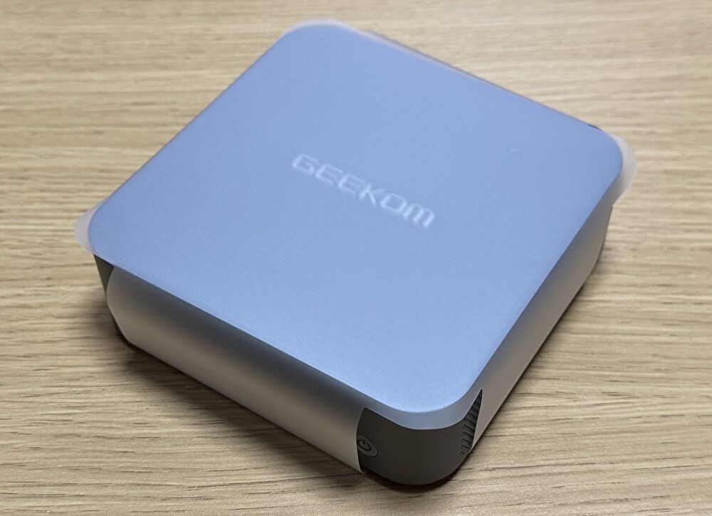 ▼角のラウンドした部分の処理も丁寧です。なお、中央のGEEKOMのロゴは、照明・撮影する角度によって、色は変化します。