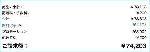 文末に、2026年1月10日を期限として、公式ストア・Amazonともに販売ページの価格より さらに割引となるクーポンを掲載しています。公式ストア・Amazonともにほぼ同価格ですが、ブラックフライデーセール期間中、文末に記載のクーポン利用により、Amazonでは74,203円での販売です。