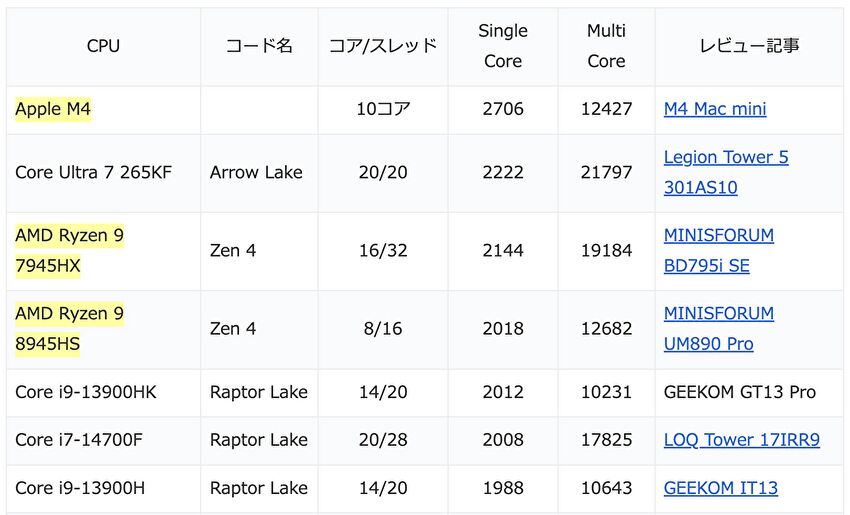 M4 Mac miniを購入、実機で計測のベンチマークスコア。CPU シングルコアのスコアは強烈、Win 11 PCを大きく凌駕