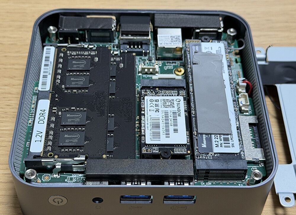 ▲▼メモリ、SSDともに、Shenzhen WODPOSIT Technologyのパーツです。国内では見慣れない、中国 深圳のブランドですが、後述のベンチマークで掲載のとおり、SSDの読み書きは速いです。また、WODPOSIT Technologyのパーツは「GEEKOM」や「MINISFORUM」での採用事例が多く、上のnoteでのGEEKOMの記事では、同社の重要なパートナーとして掲載されています。