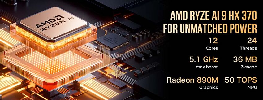 ▲▼AMD Ryzen AI9 HX 370の実力は今更からと思いますので割愛しますが、50TOPSのNPUを搭載し、GPUもAMD Radeon 890Mですので、軽めのゲームを楽しむこともできます。なお、スペックとしては以下の「GMKteC EVO-X2」が大きく優位ですが、普段使いにおいては「EVO-X1」で十分です。