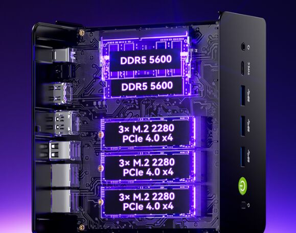 USB4とOCulink ポートを装備し、M.2 PCIe 4.0 SSD スロットを3つ備えています。メモリとSSDの価格が高値で推移するなか、メモリ 48GB(DDR5 24GB x 2)とSSDの価格を考慮すると割安です。