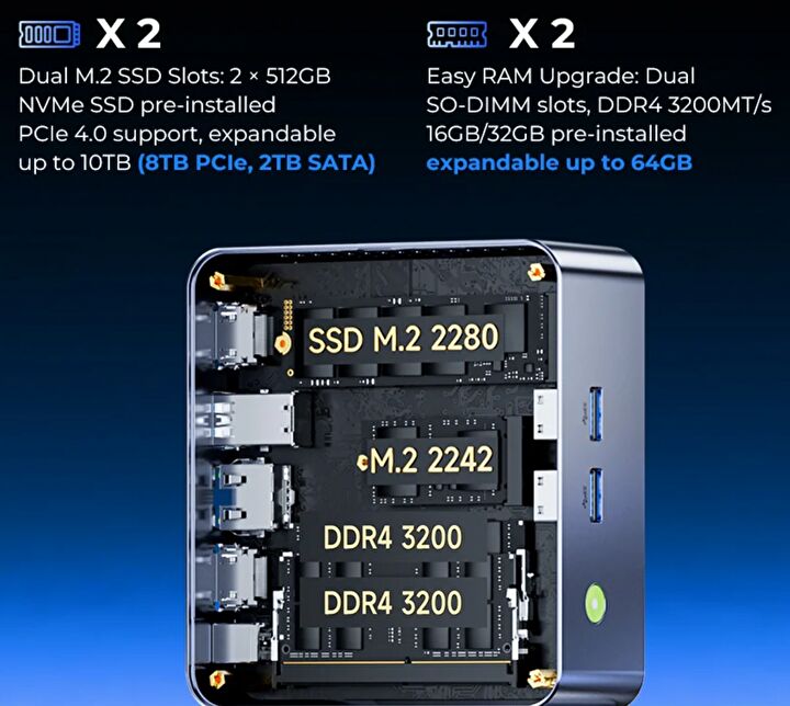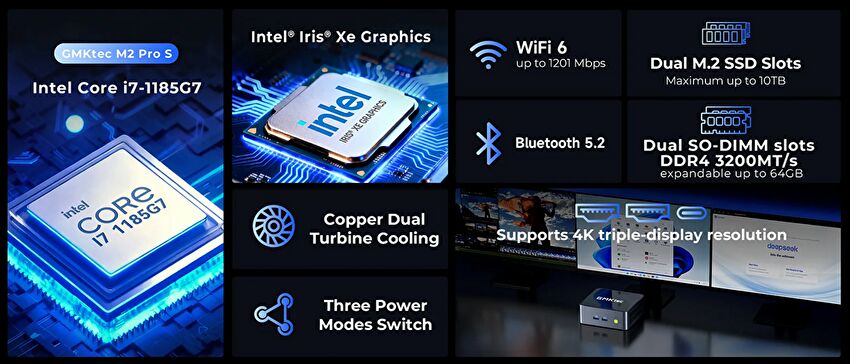 GMKtecより、インテル 第11世代のCore i7-1185G7を搭載するミニPC「GMKtec M2 Pro S」が発売となりました。DDR4 メモリ、M.2 SSDともに2スロットですが、M.2 SSD スロットの1つは 2242サイズのSATA接続です。