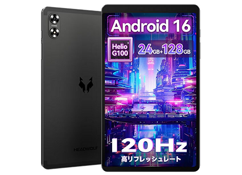 Headwolfより、SoCにHelio G100を搭載する Android 16 タブレット「Headwolf Fpad6 SE」が販売されています。LTEとWidevine L1に対応、リアカメラは16百万画素である一方、物理メモリは4GB、8.7インチ液晶の解像度は 1340 x 800です。なお、2026年2月23日現在のAmazon クーポン価格は 17,999円です。